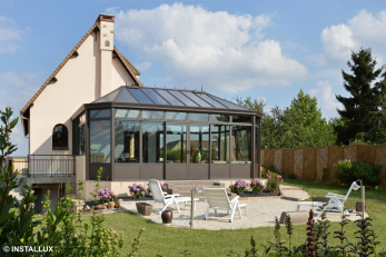 De plus, la hauteur générée par cette toiture crée un volume intérieur agréable, donnant une sensation d'espace et de grandeur à votre véranda. La toiture à 3 pentes permet également une bonne gestion de la luminosité, offrant un équilibre entre l'apport de lumière naturelle et la protection contre les rayons directs du soleil.
